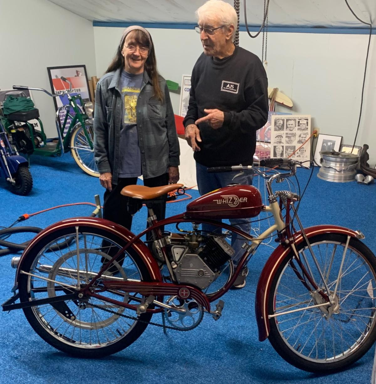 So it's NEW YEARS DAY (Hurrah!) and I'm celebrating without a hangover on account of I took a wee vacation from alcohol--which had been a big part of both my social life and my carefully curated personal lore, legend & writing mystique--exactly one year ago today. It wasn't a huge, change-of-life thing, but I'd come to a point where I was swigging a bit almost every night plus even a little bit of the old sauce was having an uncomfortably large effect on me (it comes with age for a lot of folks...except for most of the Brits and Australians I know) and the morning-after effects had advanced from mere grim doldrums to painful, debilitating mental and physical quicksand. So I thought I'd try to do without--cold turkey and just to see how long I could manage it--and today marks one solid year. Kind of proud of it, and Carol's very pleased with it, as alcohol sometimes transported me to the realm of loud, boorish asshole, which at the time I thought was more like "Hey, I'm really on a roll now!" I'm not evangelical about it at all. Each of us is different and, like everything else, some can and some can't. Or at least shouldn't. Life changes as we get older, and I'm pretty sure most of us have to change as well to keep up with it. End of sermon. And now, if you'll turn to page 335 in your hymnals, we'll sing the one about Noah sending out a sea-worthy bird of some kind--I think it was a dove, and I'm sure it wasn't a penguin or a pelican--from the Ark (which was probably smelling pretty gamy by that point) to see if the rain had stopped and if there was dry land ahead... 'Cause that's what it's like outside our thankfully third-story window right now in supposedly sunny greater Los Angeles. It's been tropical monsoon-grade pouring on-and-off for several days, a that's made the nice ones seem even more precious. Sez here on my phone that it's gonna clear up a bunch after straight-up noon, and by God I'm gonna put on my life jacket & water wings and try a bike ride! MO' CALIFORNY NEWS As you know from the last e-blast, I did a more-successful-than-expected book signing at Tina and Chuck's incredible Autobooks/Aerobooks in Burbank last Saturday (you absolutely MUST visit...but bring the credit card that still works, as there's so much you'll want to take home!) and met up with and did a wee interview with Mark Vaughn of AUTOWEEK. Now I sold my first-ever "you're a REAL motoring writer now" stories to AUTOWEEK back in the early-to-mid 1980s, and they were instrumental in launching my ride-mooching career. But Mark and I had never met. Nice guy and truly knows the world of wheels and motors and the people who make them work and go fast. But I was totally unprepared for the incredibly nice piece he wrote about me and the books (and audiobook) for AUTOWEEK's very excellent webzine. Wow! Here's a link below. I'll just stand over to the side and humbly dig my toe into the carpet and blush a bit while you read it: CLICK HERE TO READ UNBELIEVABLY Other matters of moment (or should that be "moments that matter?") from California: Had a lovely lunch with Jim Hall (not the "Chaparral" Jim Hall, but the one who is kind of floor manager/project engineer/fabricator-felicitator/guy who has to show important guests and dignitaries around when Jay's otherwise occupied at Jay Leno's incredible Big Dog Garage) and Jim's wife Rachel, who plays high-level classical & chamber music French Horn and also makes a delicious cauliflower and potato soup that is only 1000 times better tasting than you'd expect. What a pleasant & interesting few hours we spent with them! Then yesterday we braved LA's notorious and endless freeway traffic to visit our friends John Morton (yes, THAT one) and his biographer/concubine/life partner and serial book author Sylvia Wilkinson. We enjoy their company so much! Sylvia has a habit/penchant for taking in and taking care of strays (squirrels, opossums, feral cats and, of course, John) and John looks after a different kind of neglected strays, in that he finds, buys & restores--exquisitely--goofy little motorized scooters/mopeds of the type that every 1950s newsboy dreamed of owning & riding one day. That's John & Sylvia below with one of his "WHIZZERS."