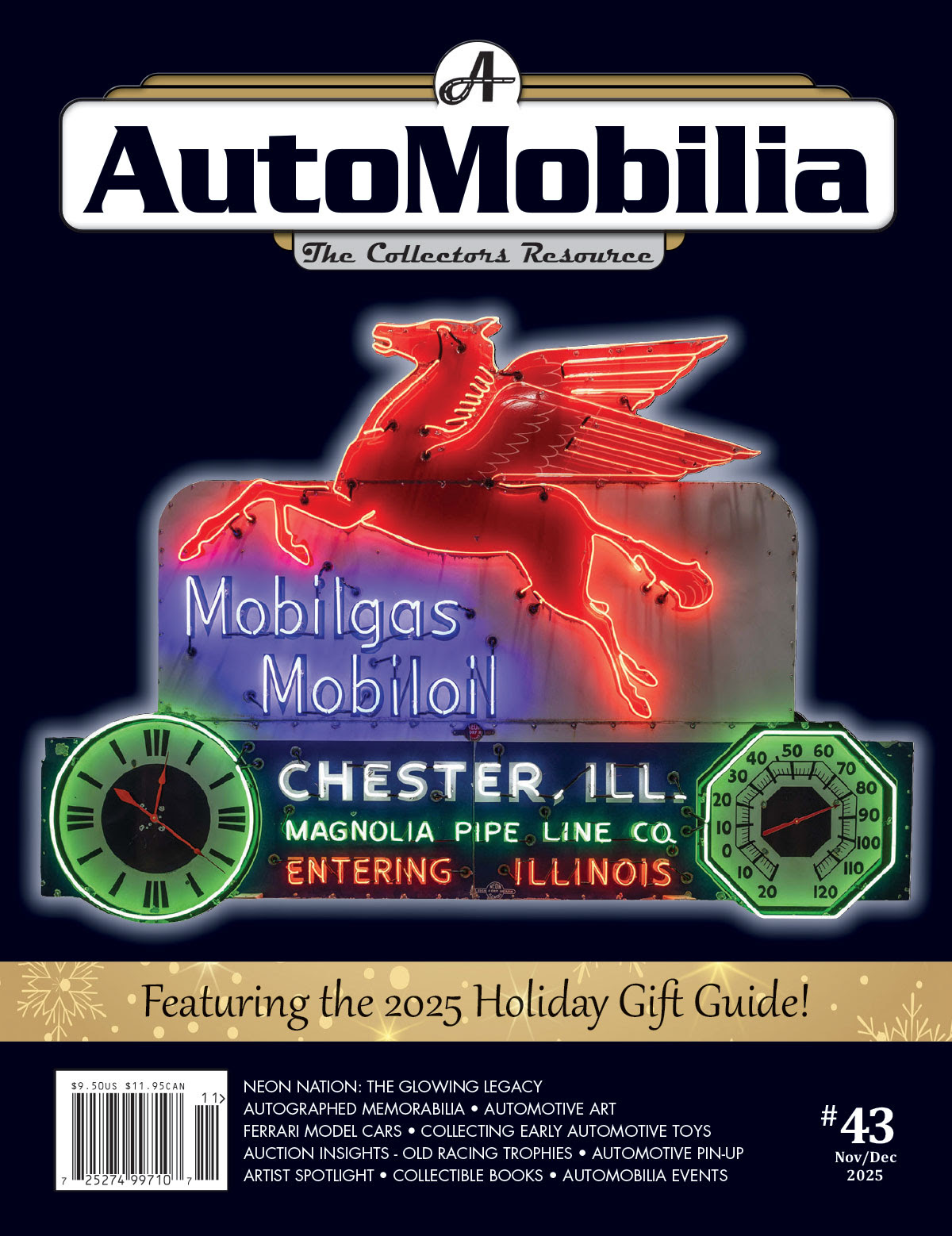 NO QUESTION YOU ARE WAY OVERDUE We don't do a lot of free stuff here at Think Fast Ink, and that's on account of we like to eat and have gas money jingling in our pockets and buy the odd automotive or motoring doodad or geegaw that strikes our fancy. Which brings us to the fine folks & like-minded friends at "AUTOMOBILIA" magazine, who cater rather completely & exclusively to folks who like automotive & motoring doodads & geegaws from the recent & distant past and especially how they tart up their garages, rec rooms, summer homes, jail cells & racecar/project car trailers. So just click on the link below and it will take you to a COMPLETELY FREE, thumb-through-it web copy of their latest--and HOLIDAY!--issue. Go ahead. It'll be fun! Just click on the cover image of the magazine below. Then, browsing, "oohing," "aahing" & oogling completed, continue on to the unrequited trivia sections below that.
